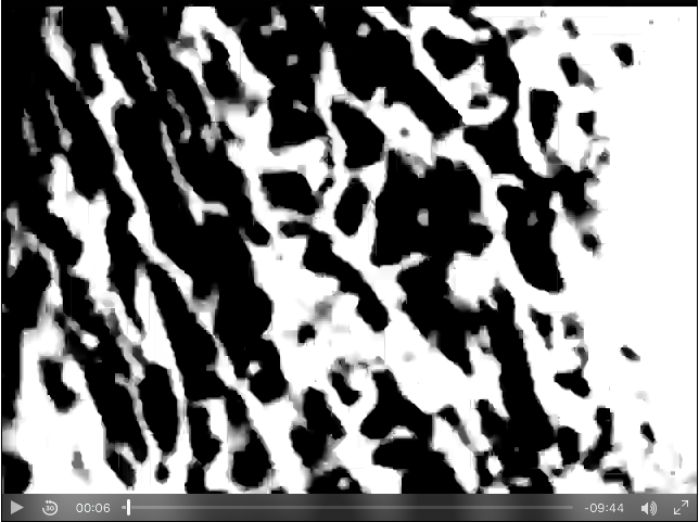 Thomas Manks Collage in der Ausstellung liegt das Motiv des Wasserstrudels zugrunde. Durch die Teilung des Motivs in kleinste Einheiten findet eine Entfremdung zwischen Betrachter und Motiv statt, die ein Ergebnis des analytischen Umgangs mit dem Bild ist. Umgekehrt aber entwickelt Thomas Mank daraus eine vom Motiv unabhängige, autonome Ästhetik. Er projiziert das Nacheinander des Films als Nebeneinander auf die Fläche. Damit macht er eine weitere, die Fotografie bestimmende Eigenschaft deutlich: Motiv und Fläche.