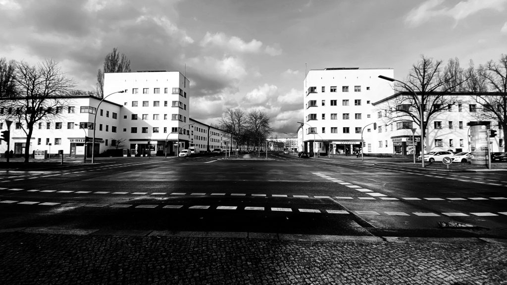 Als Viertel haben wir exemplarisch die Weiße Stadt gewählt, eine Großsiedlung mit offener Binnenstruktur und eine der sechs Siedlungen der Berliner Moderne. Hier kreuzen sich die zeitgenössischen Lebensumstände mit den mittlerweile historisch zum Weltkulturerbe veredelten Idealen der Moderne.